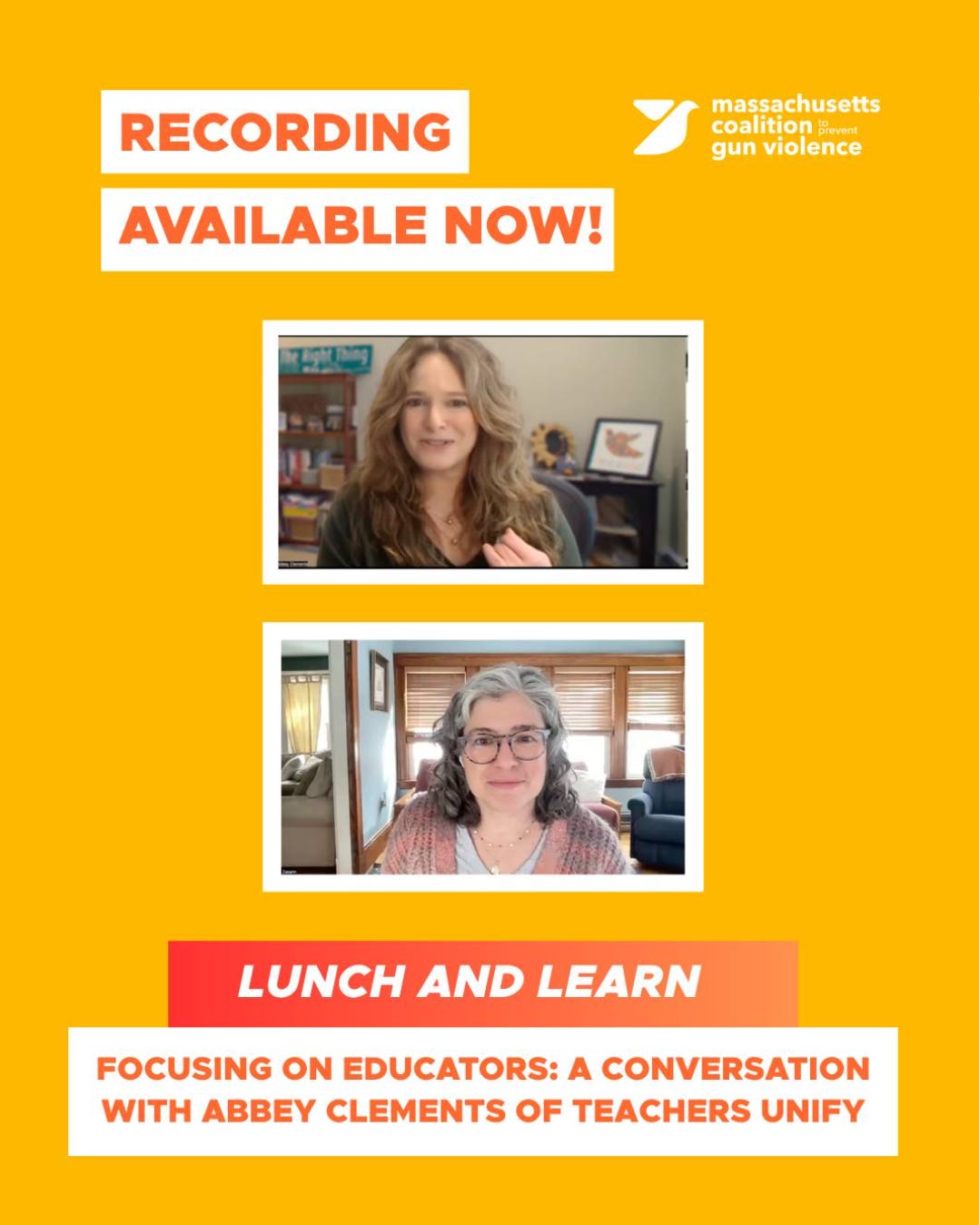 Teachers Unify Co-Founder and Executive Director Abbey Clements was a guest for Massachusetts Coalition to Prevent Gun Violence’s recent Lunch & Learn to talk about the work we’re doing and the impact of the fear and impact of gun violence on our school communities. Many thanks to our friends – follow their important work at www.mapreventgunviolence.org. Check out the webinar here.